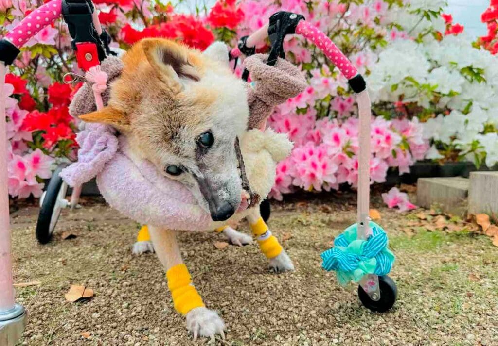 Кабосу вже важко ходити самостійно, тому собака пересувається за допомогою інвалідного візочка.