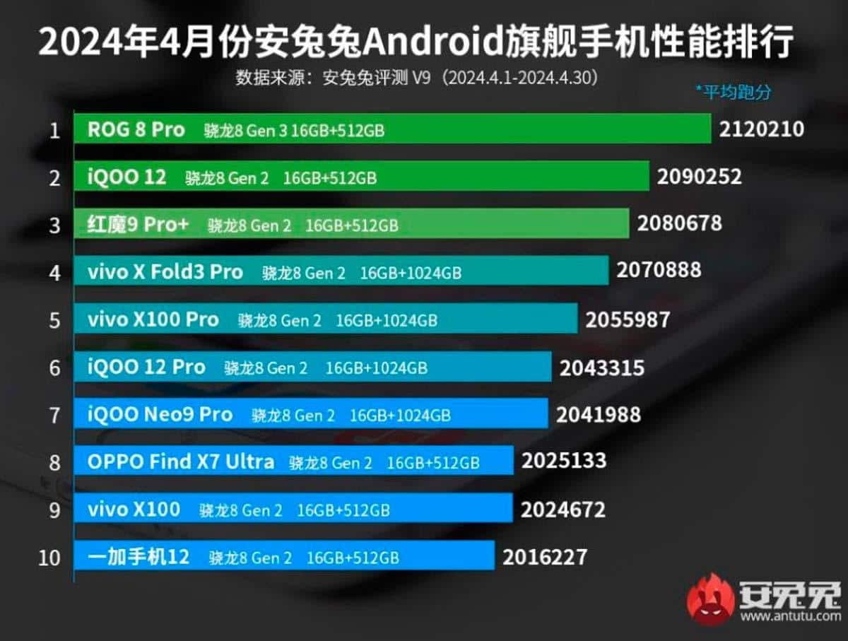 Розробники популярного бенчмарку Antutu опублікували новий рейтинг. Цього разу вони досліджували продуктивність флагманів на Android за підсумками квітня 2024 року.