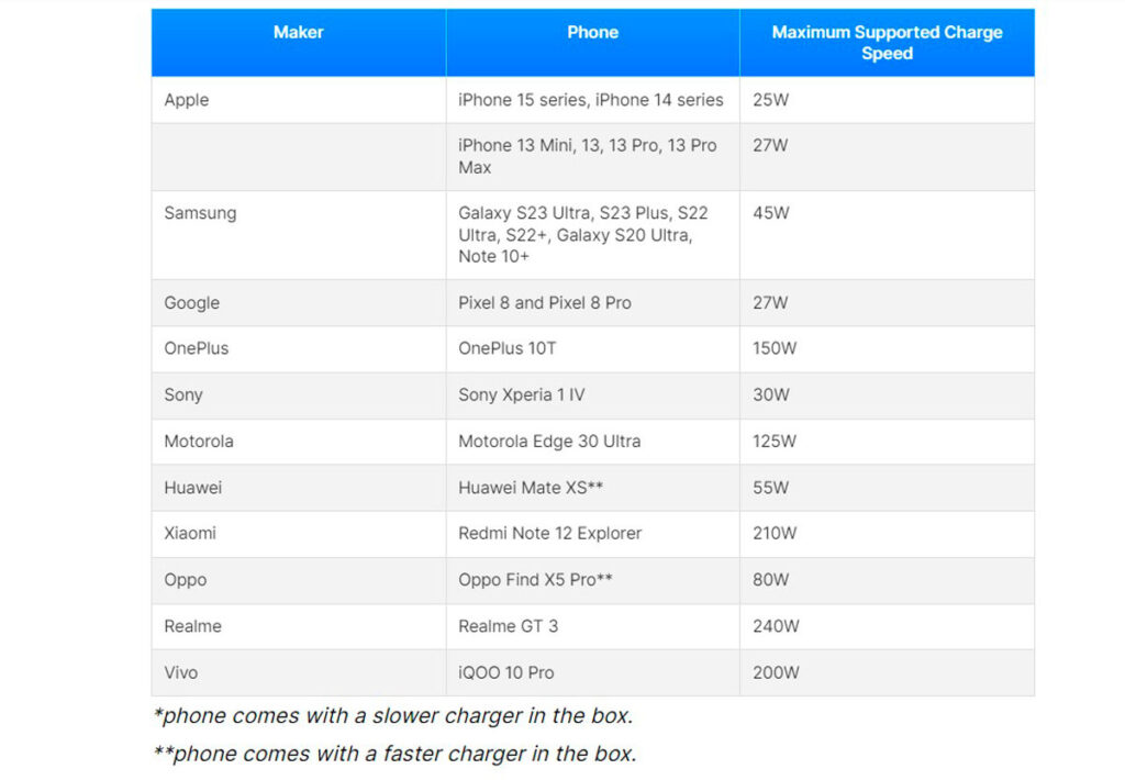 Враховуючи все це, онлайн-видання PhoneArena склало рейтинг смартфонів з найшвидшою швидкістю зарядки.