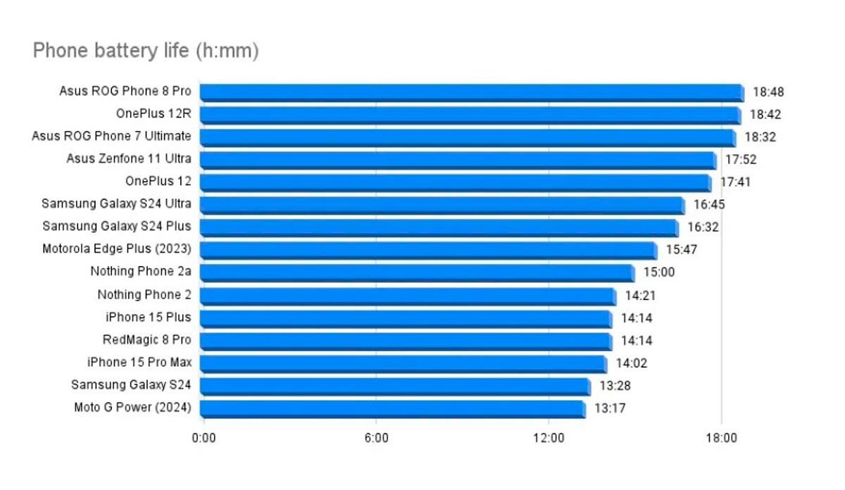 Телефони з найкращим терміном служби батареї (години : хвилини)