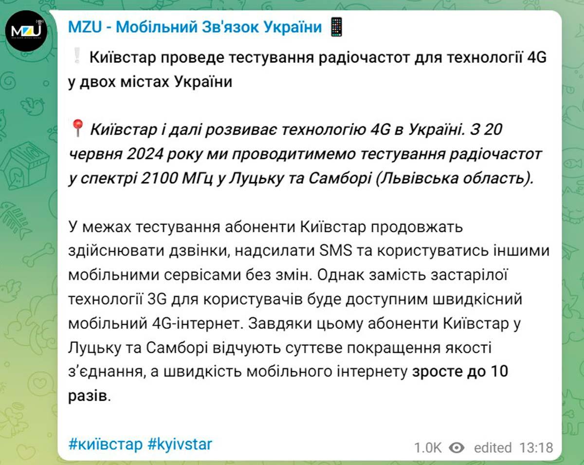 Про це повідомляє телеграм-канал “MZU – Мобільний Зв’язок України”.