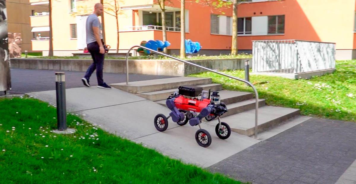 Швейцарські дослідники з Robotic Systems Lab представили нову конструкцію робота, який поєднує в собі можливості роботів на колесах і ногах. Цей робот орієнтується в середовищі, використовуючи різні методи навчання з підкріпленням, які дозволяють йому плавно переходити між режимами водіння та ходьби, адаптуючись до різних місцевостей.