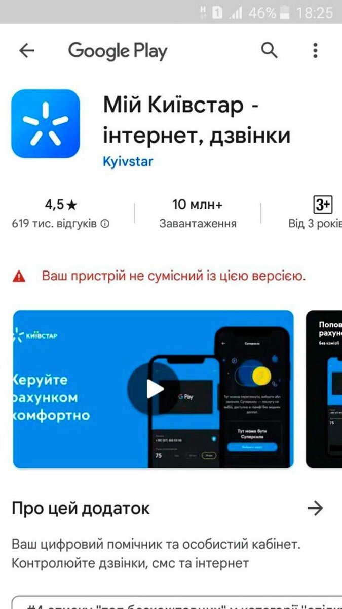 «Встановити додаток Мій Київстар можливо лише якщо версія ОС Android не нижче 7.0… Якщо версія Android нижче 7.0, встановити додаток, на жаль, не вдасться», – повідомили у «Київстар».