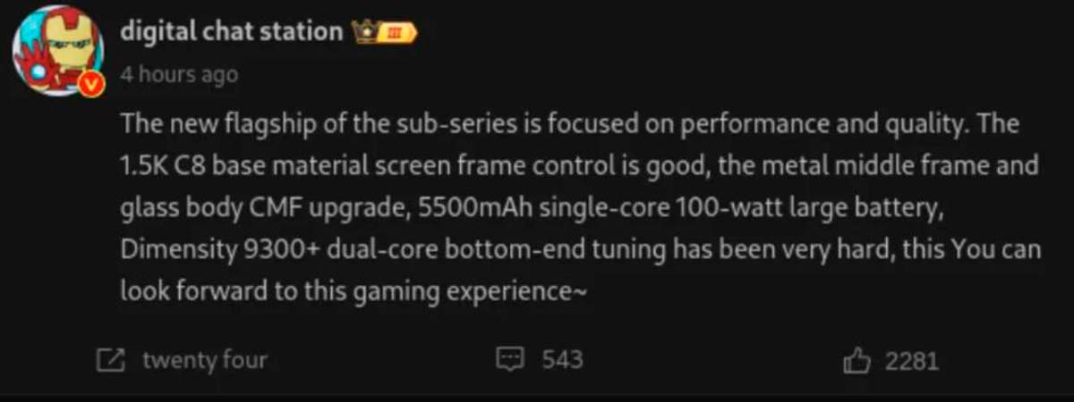 Акумулятор пристрою матиме ємність 5500 мА/год. і підтримку швидкої зарядки на 120W. Крім того, пристрій отримає металевий каркас і задню панель зі скла. Дебютний показ апарату з усіма перерахованими характеристиками очікується до середини цього року.
